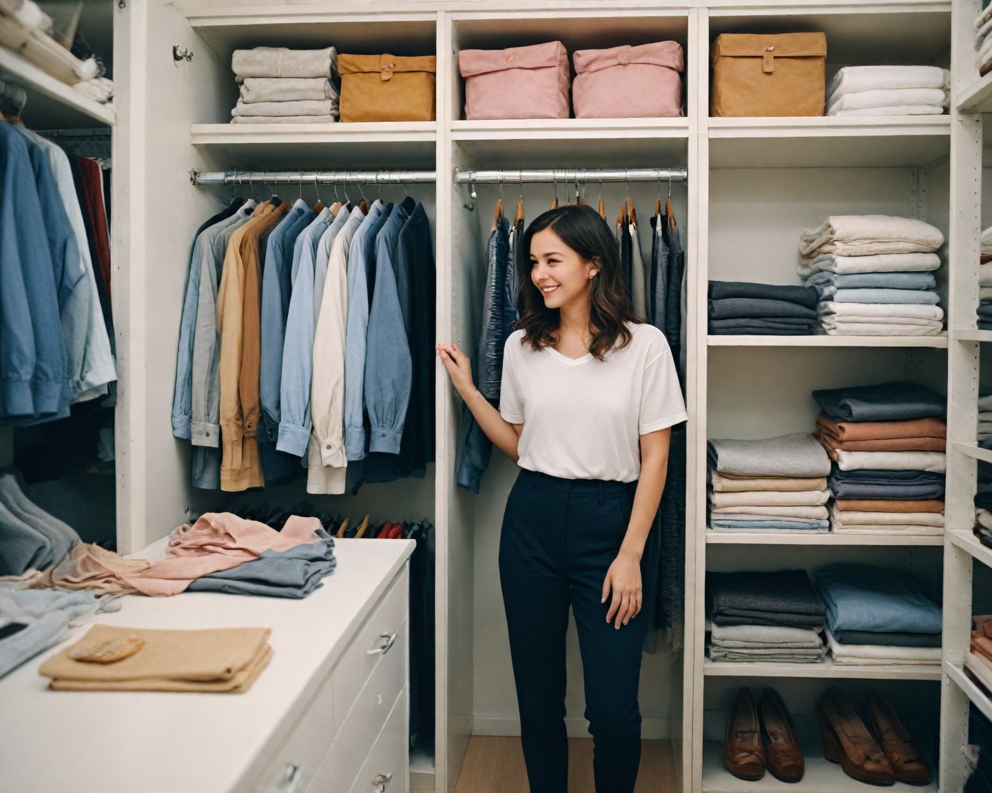 Armazenar roupas de estações diferentes pode ser um desafio, mas com a estratégia certa, isso se torna fácil e prático. Uma dica é investir em caixas e organizadores que podem ser etiquetados e empilhados durante o ano. Durante os meses mais frios, guarde roupas de verão em locais menos acessíveis, e vice-versa.